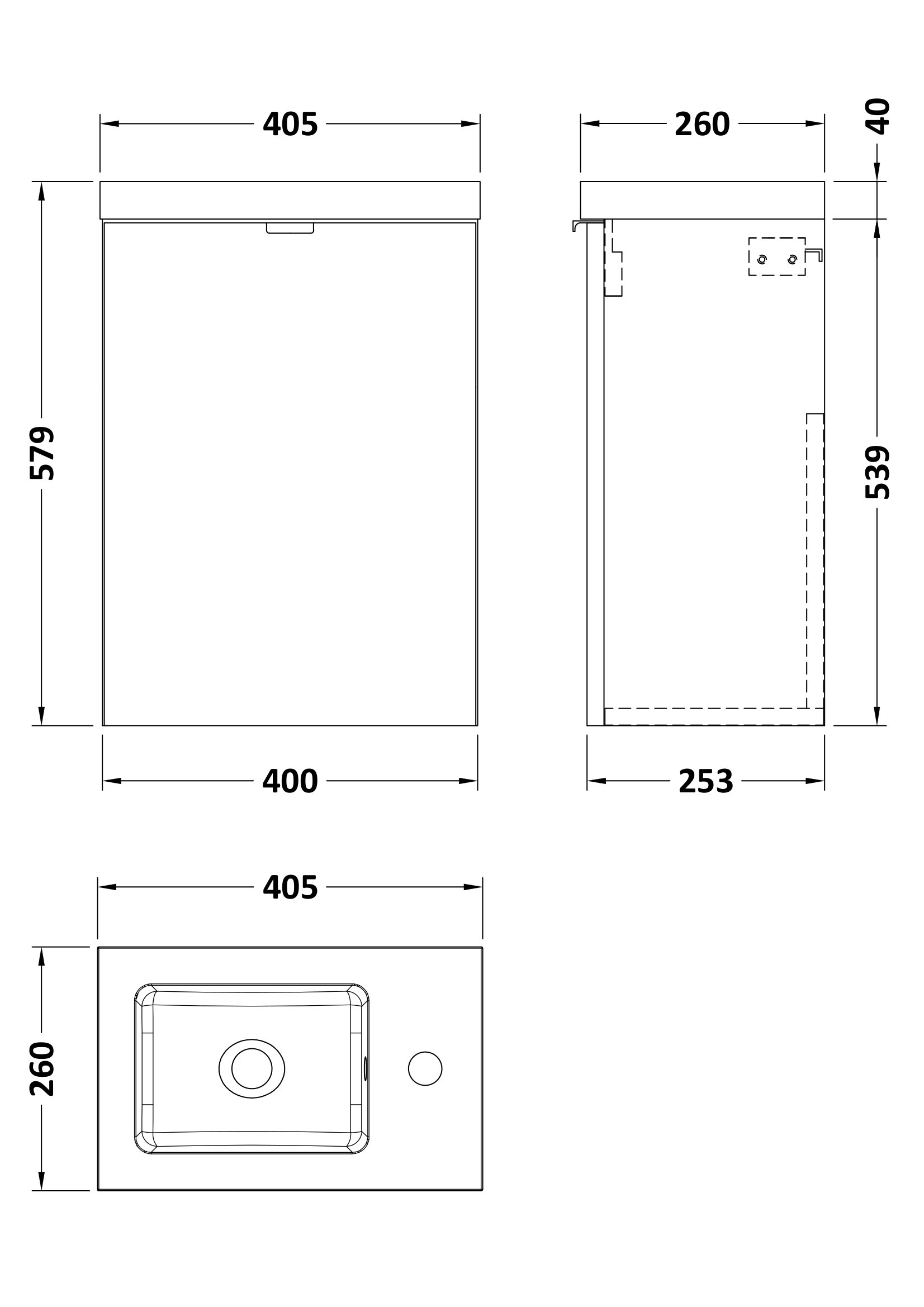 Fusion Wall Hung 1 Door Vanity Unit & Polymarble Basin Compact 400mm