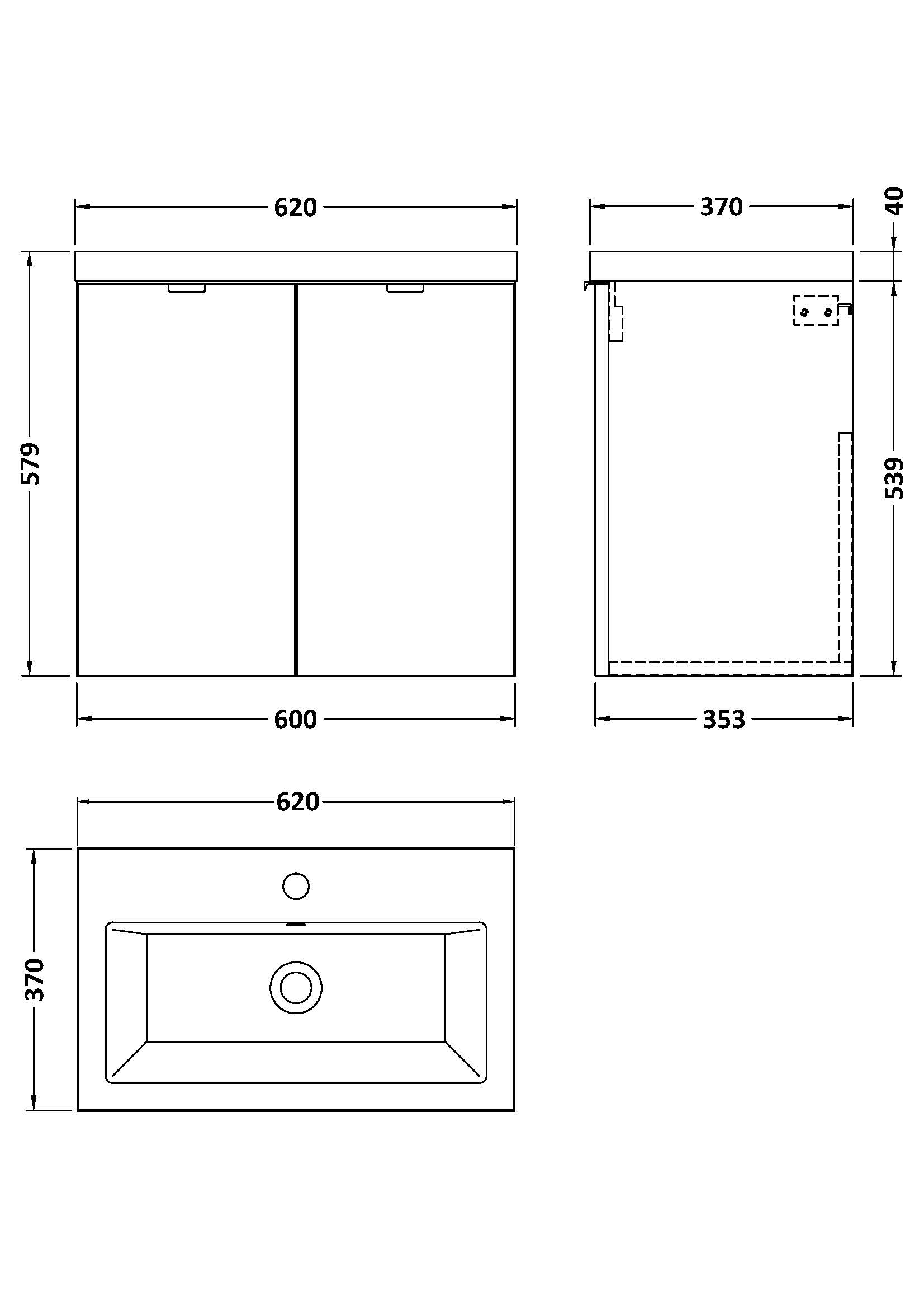 Fusion Wall Hung 2 Door Vanity Unit & Ceramic Basin 600mm