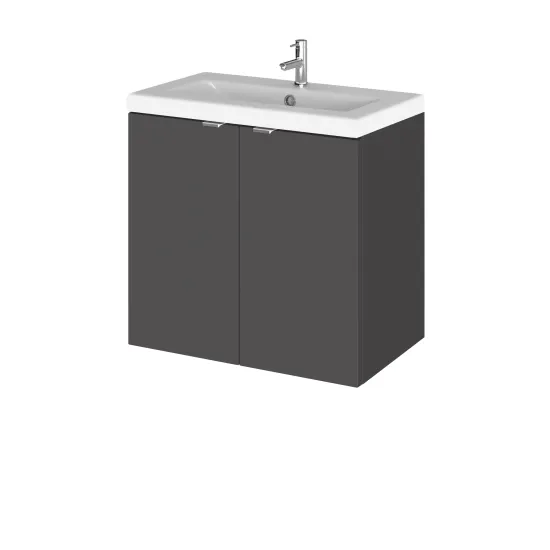 Hudson Reed Fusion Wall Hung 2 Door Vanity Unit & Ceramic Basin 600mm - Gloss Grey