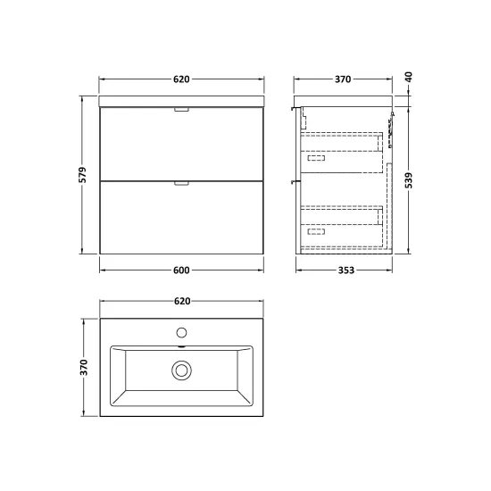 Fusion Wall Hung 2 Drawer Vanity Unit & Ceramic Basin 600mm
