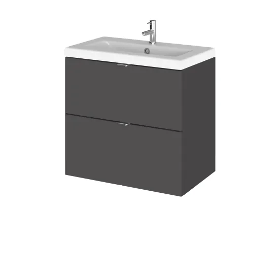 Hudson Reed Fusion Wall Hung 2 Drawer Vanity Unit & Ceramic Basin 600mm - Gloss Grey
