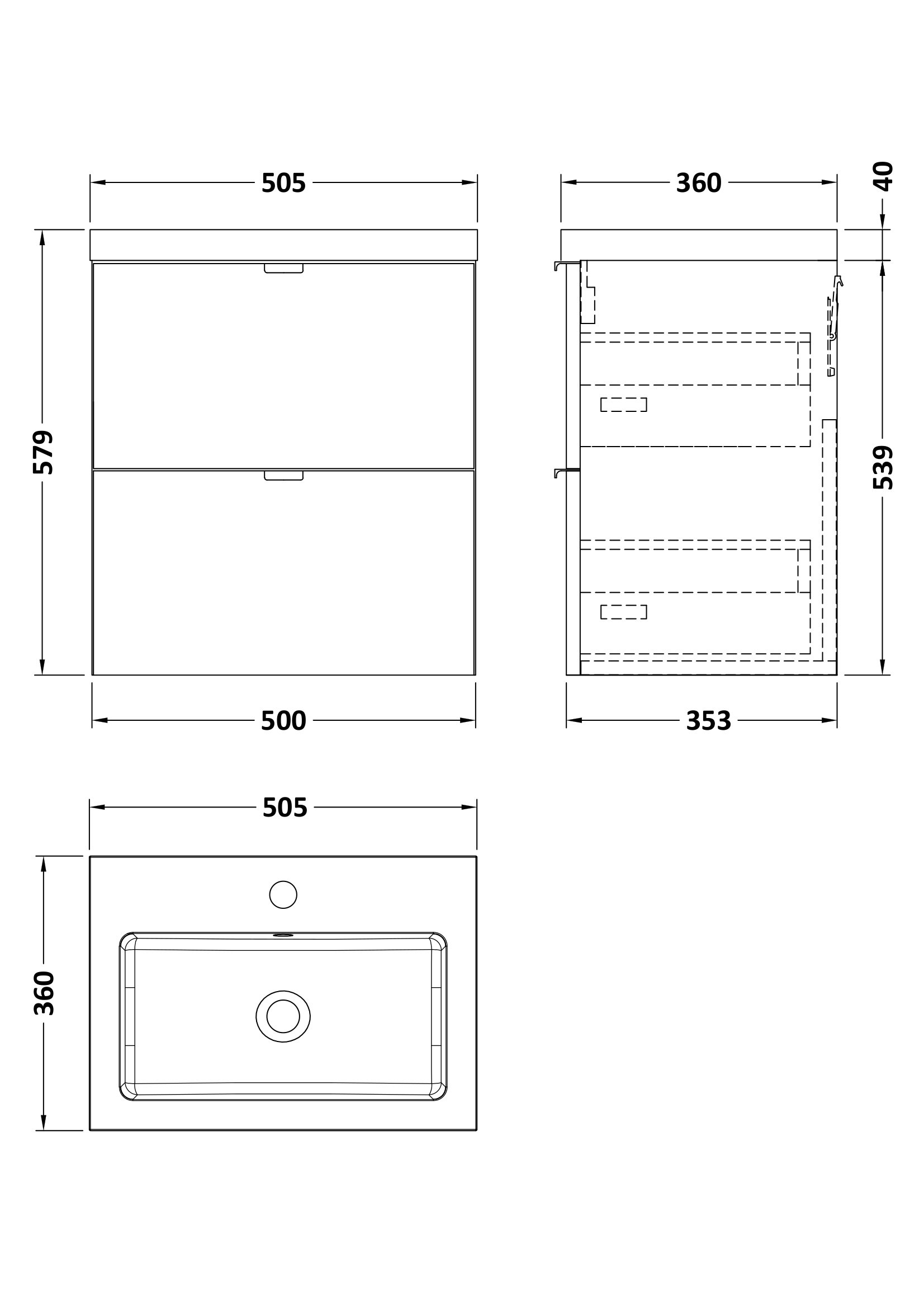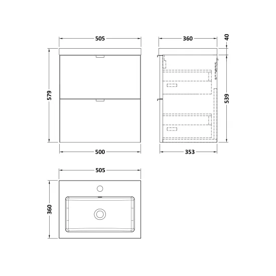Fusion Wall Hung 2 Drawer Vanity Unit & Polymarble Basin 500mm