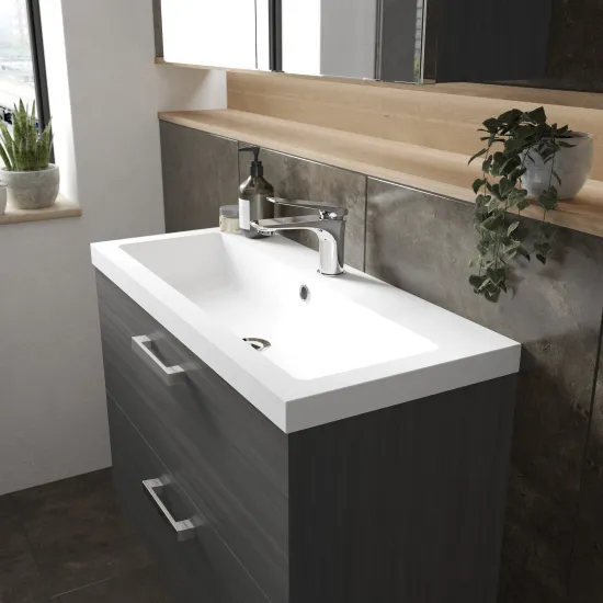The cooling effect of this Anthracite Woodgrain unit creates seamless contrast with our range of polymarble basins.