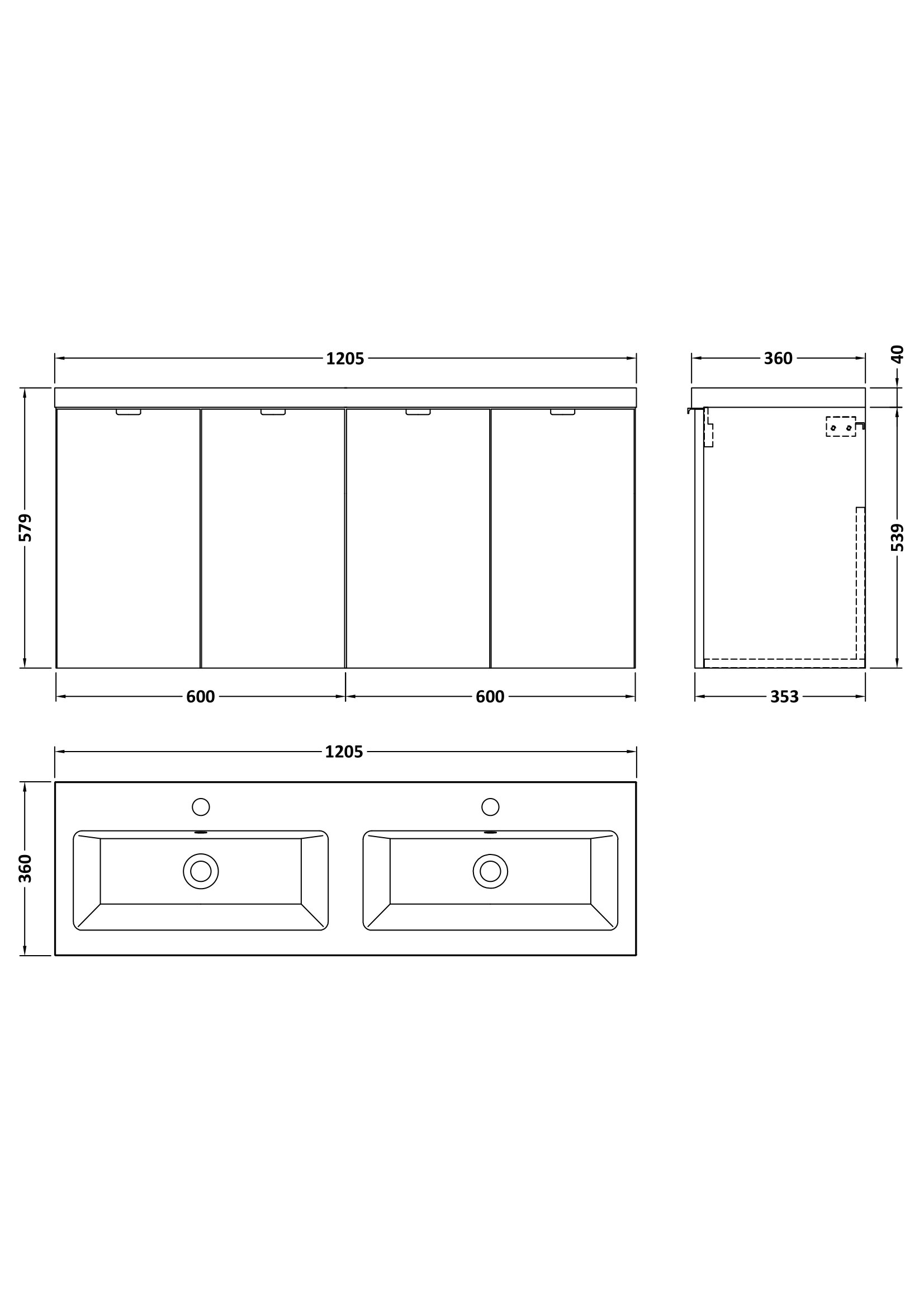 Fusion Wall Hung 4 Door Vanity Unit & Twin Ceramic Basin 1200mm