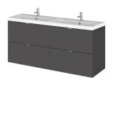 Fusion Wall Hung 4 Drawer Vanity Unit & Twin Ceramic Basin 1200mm