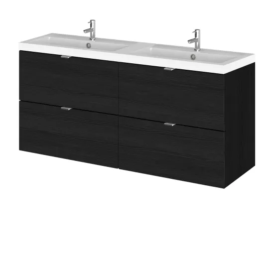 Hudson Reed Fusion Wall Hung 4 Drawer Vanity Unit & Twin Polymarble Basin 1200mm - Hacienda Black