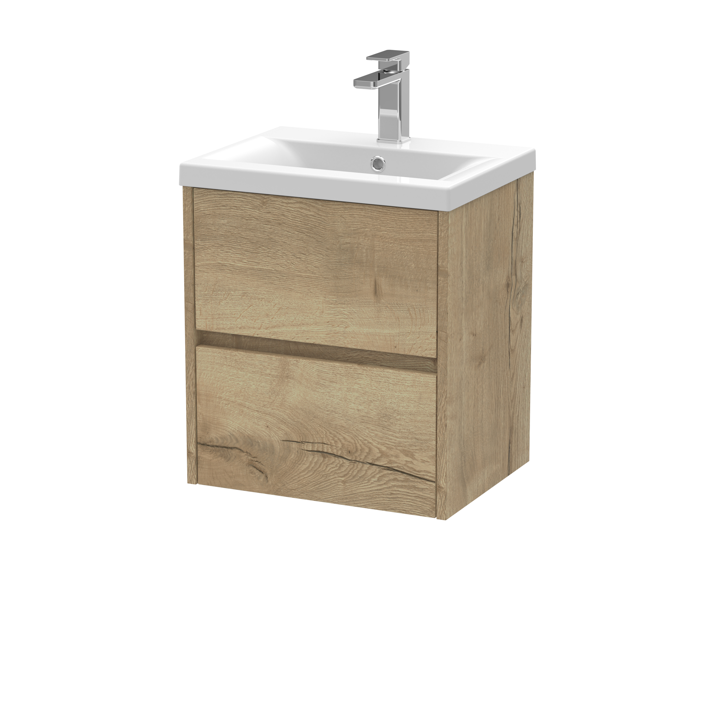 Hudson Reed Havana Wall Hung 2 Drawer Vanity Basin Unit & Mid-Edge Ceramic Basin, 500mm - Autumn Oak