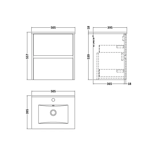 Havana Wall Hung 2 Drawer Vanity Basin Unit & Minimalist Ceramic Basin, 500mm