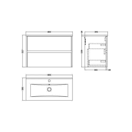 Minimum quantity for "Havana Wall Hung 2 Drawer Vanity Basin Unit & Minimalist Ceramic Basin, 800mm" is 1.