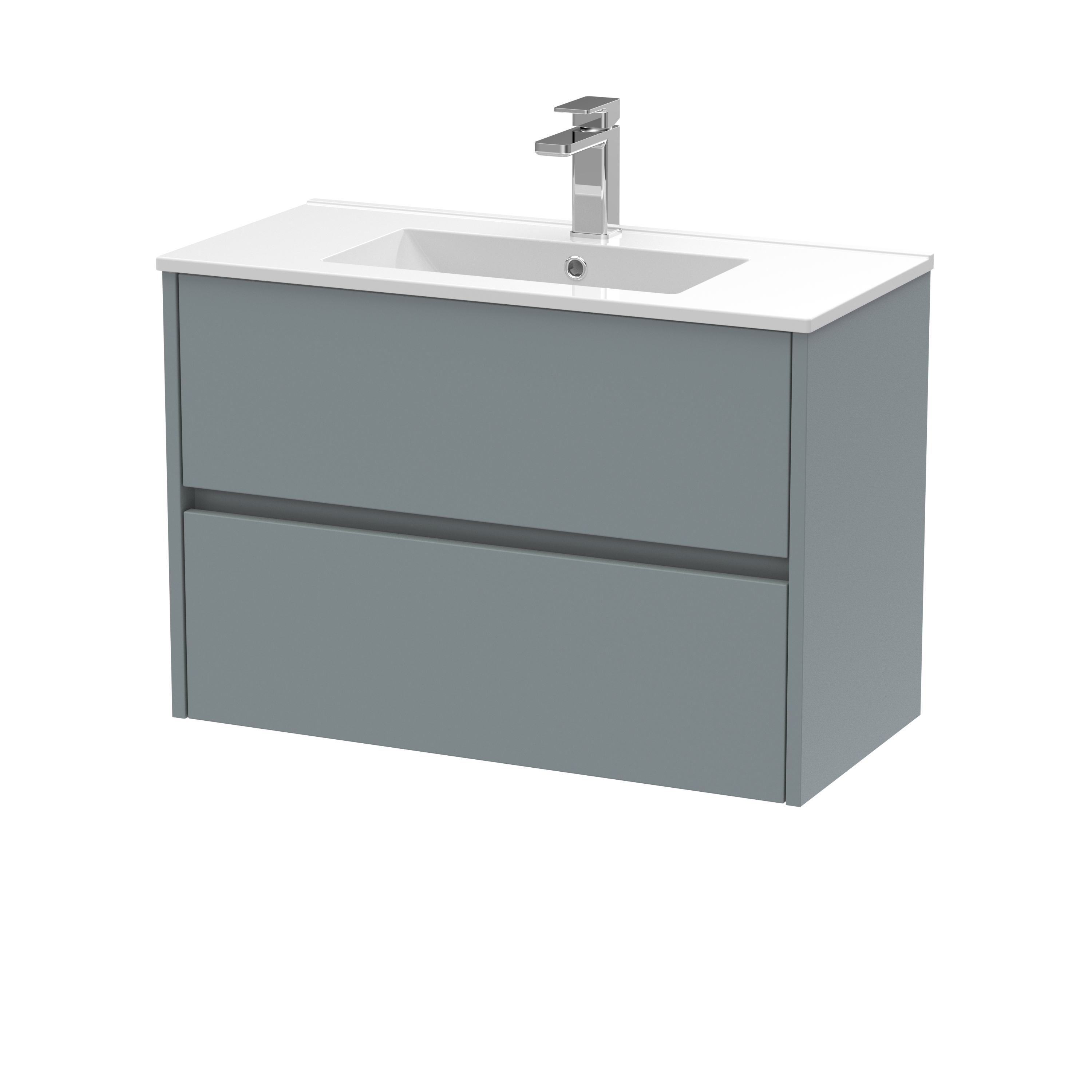 Hudson Reed Havana Wall Hung 2 Drawer Vanity Basin Unit & Minimalist Ceramic Basin, 800mm - Coastal Grey