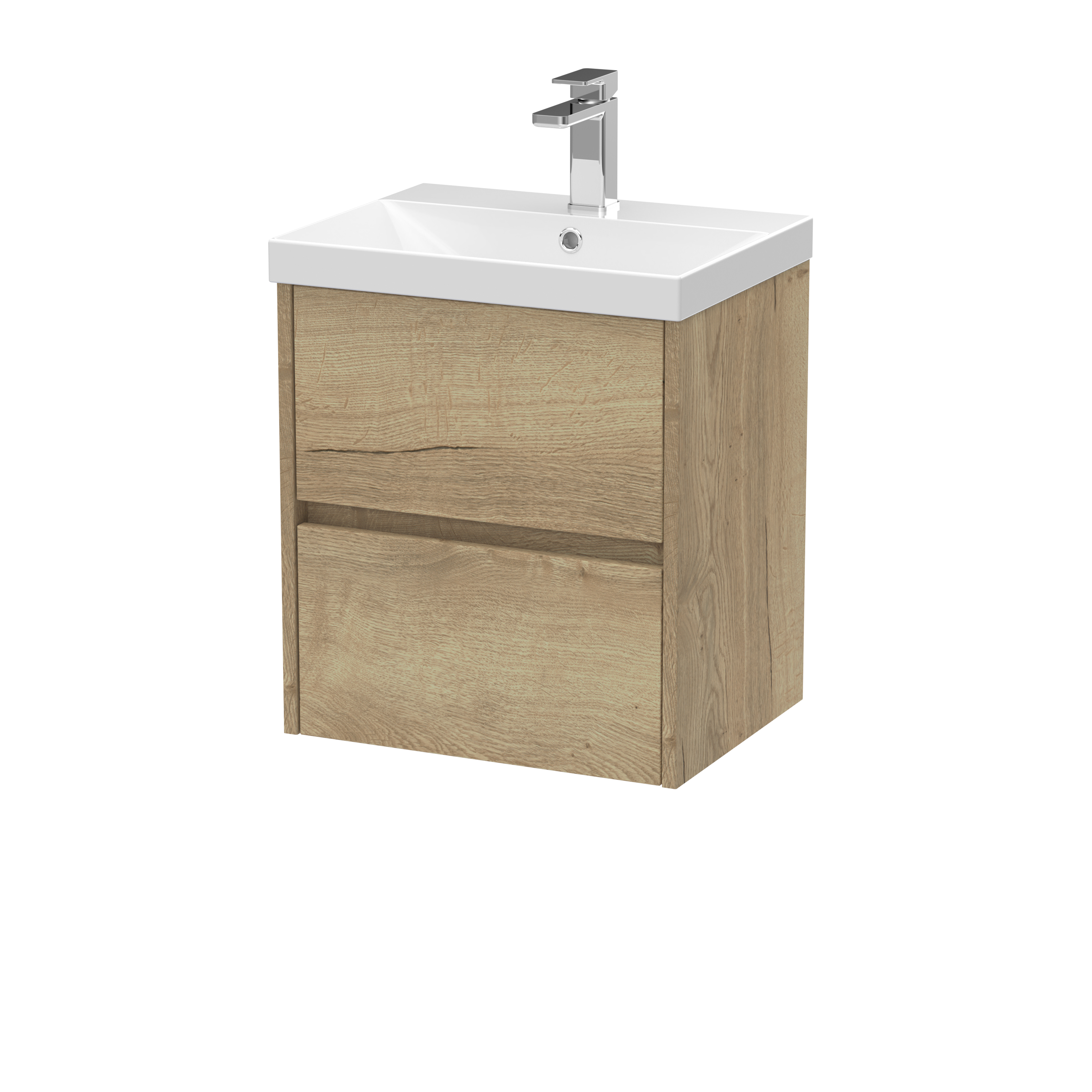 Hudson Reed Havana Wall Hung 2 Drawer Vanity Basin Unit & Thin-Edge Ceramic Basin, 500mm - Autumn Oak