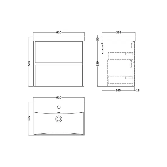 Havana Wall Hung 2 Drawer Vanity Basin Unit & Thin-Edge Ceramic Basin, 600mm