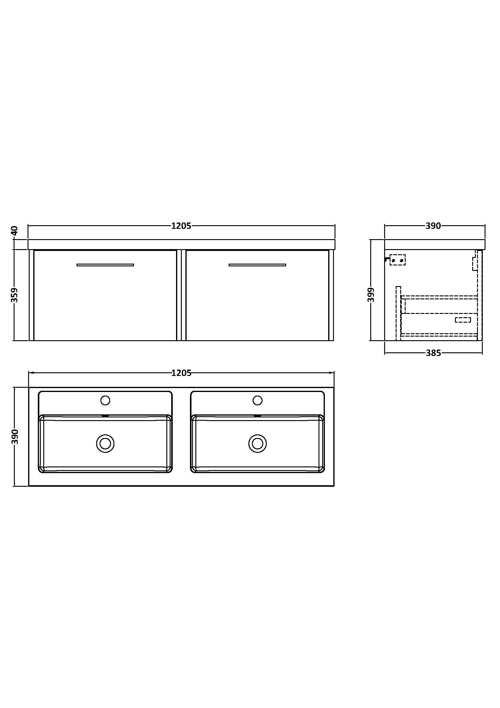 Juno 1200mm Wall Hung 2-Drawer Vanity & Double Basin