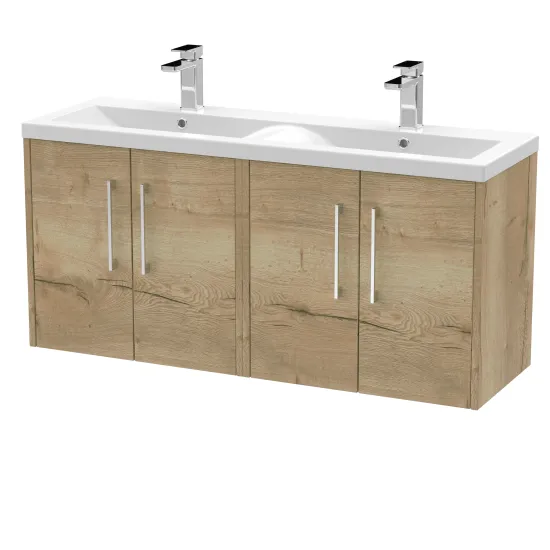 Hudson Reed Juno 1200mm Wall Hung 4-Door Vanity & Double Basin - Autumn Oak