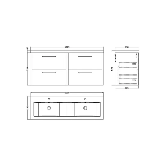 Juno 1200mm Wall Hung 4-Door Vanity & Double Basin