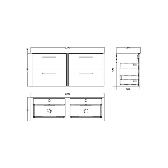 Juno 1200mm Wall Hung 4-Door Vanity & Double Basin
