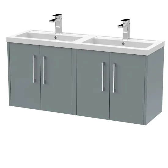 Hudson Reed Juno 1200mm Wall Hung 4-Door Vanity & Double Basin - Coastal Grey