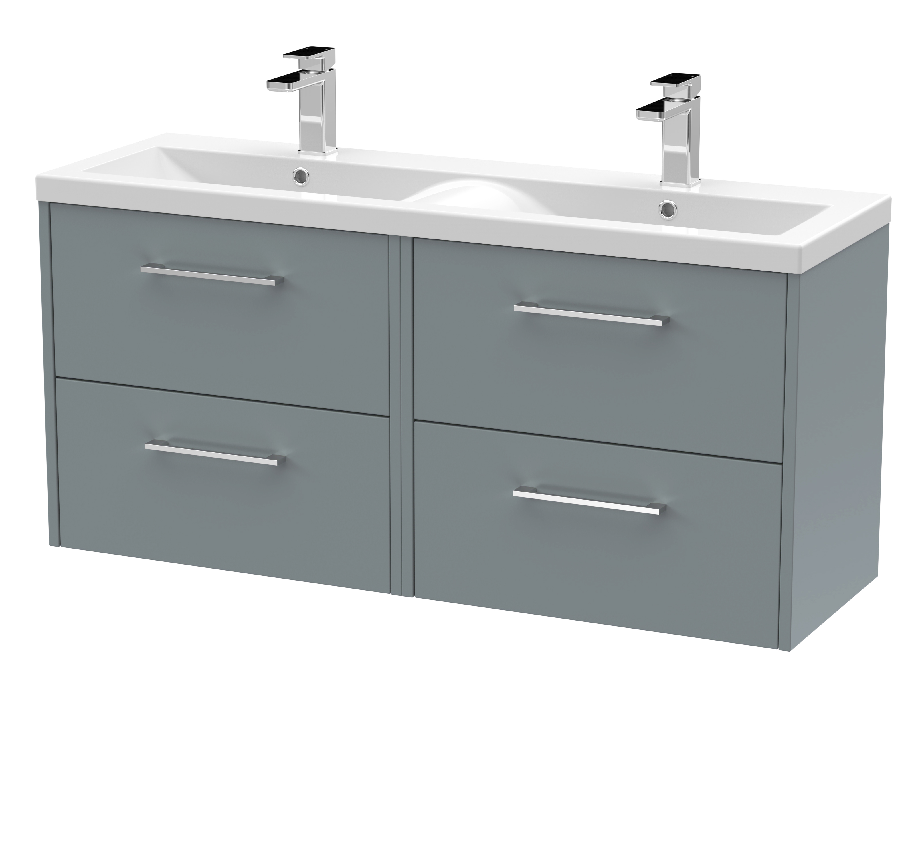 Hudson Reed Juno 1200mm Wall Hung 4-Door Vanity & Double Basin - Coastal Grey