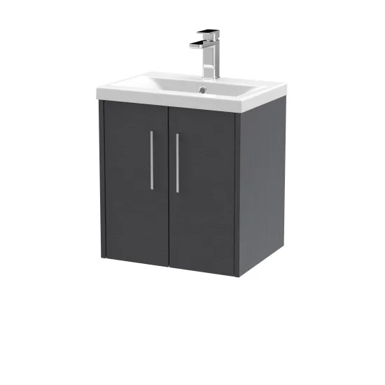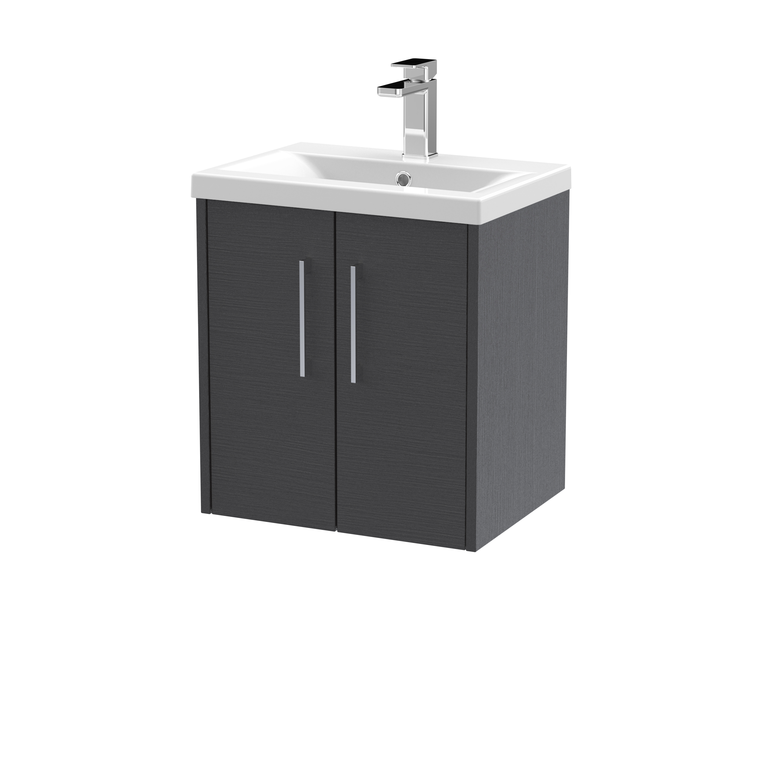 Hudson Reed Juno 500mm Wall Hung 2-Door Vanity & Mid-Edge 1 Tap Hole Basin - Graphite Grey