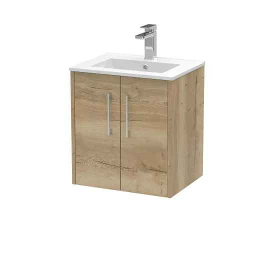 Hudson Reed Juno 500mm Wall Hung 2-Door Vanity & Minimalist 1 Tap Hole Basin - Autumn Oak