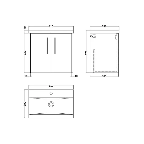 Juno 600mm Wall Hung 2-Door Vanity & Mid-Edge 1 Tap Hole Basin