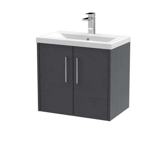 Hudson Reed Juno 600mm Wall Hung 2-Door Vanity & Mid-Edge 1 Tap Hole Basin - Graphite Grey