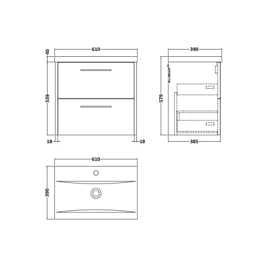 Juno 600mm Wall Hung 2-Drawer Vanity & Mid-Edge 1 Tap Hole Basin