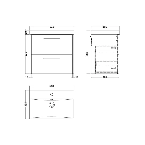 Juno 600mm Wall Hung 2-Drawer Vanity & Thin-Edge 1 Tap Hole Basin