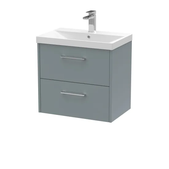 Hudson Reed Juno 600mm Wall Hung 2-Drawer Vanity & Thin-Edge 1 Tap Hole Basin - Coastal Grey