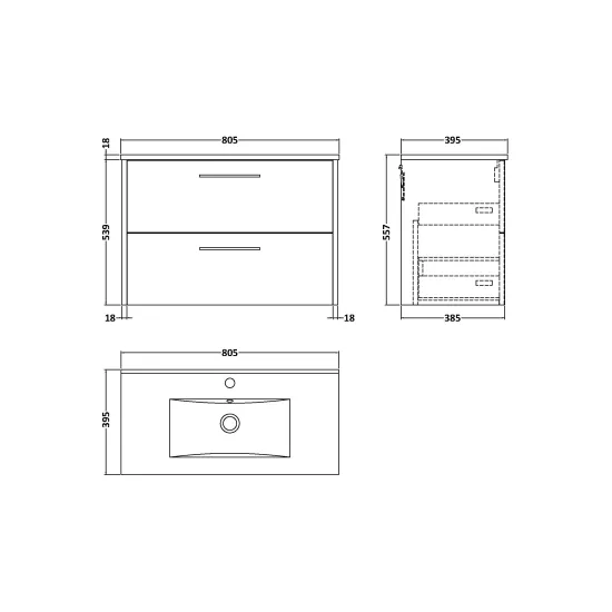 Juno 800mm Wall Hung 2-Drawer Vanity & Minimalist 1 Tap Hole Basin