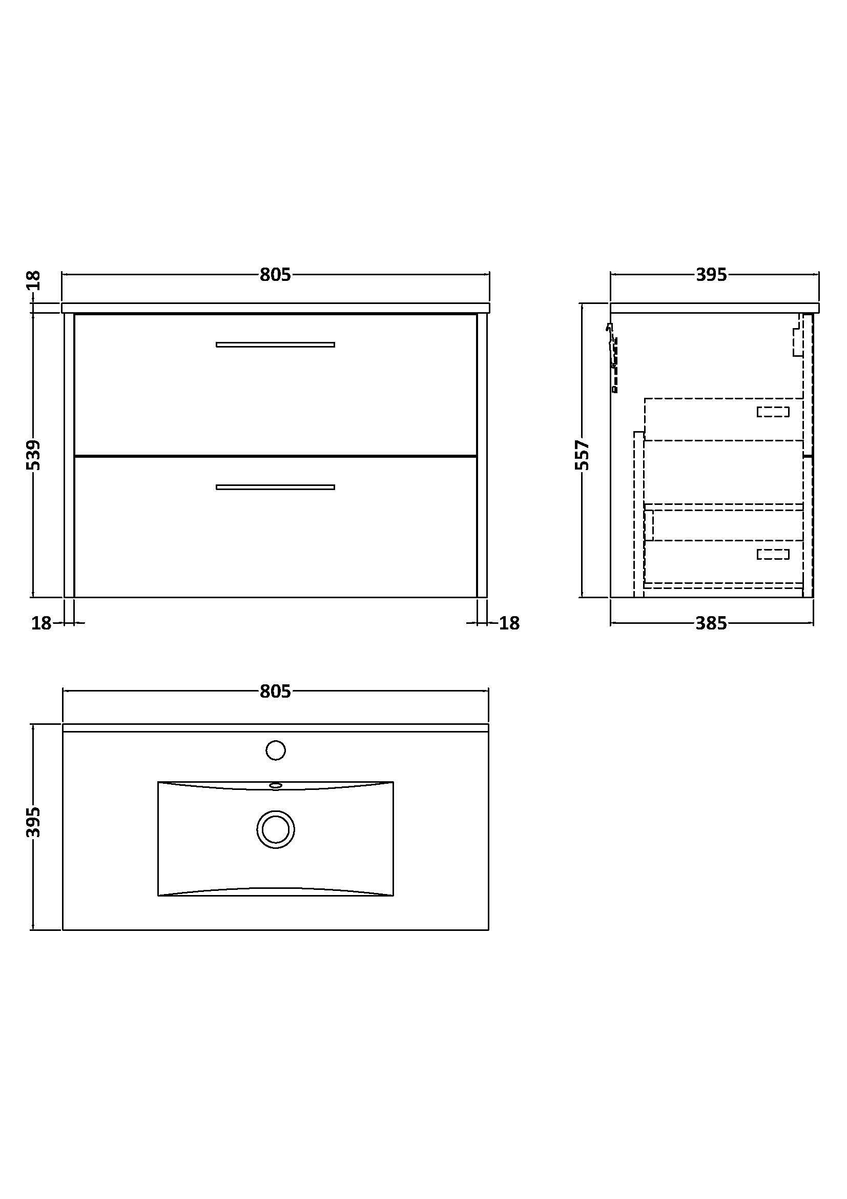 Juno 800mm Wall Hung 2-Drawer Vanity & Minimalist 1 Tap Hole Basin