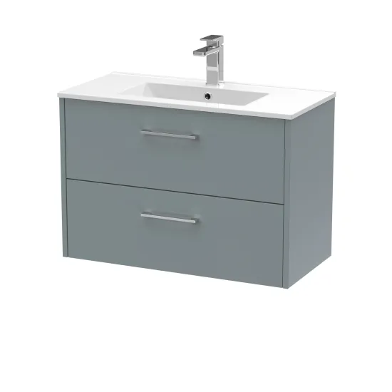 Hudson Reed Juno 800mm Wall Hung 2-Drawer Vanity & Minimalist 1 Tap Hole Basin - Coastal Grey
