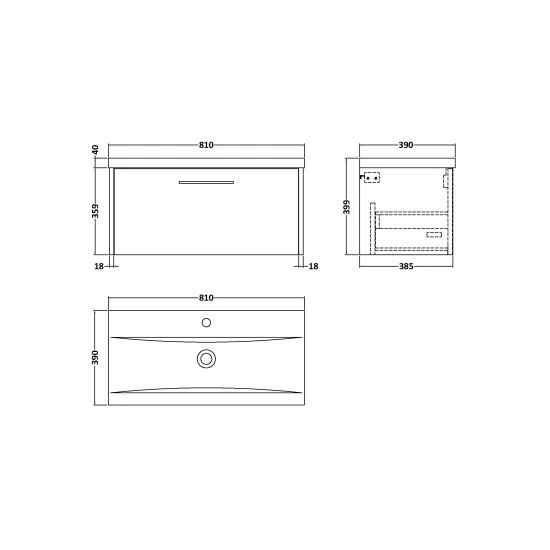Juno 800mm Wall Hung Single Drawer Vanity & Mid-Edge 1 Tap Hole Basin