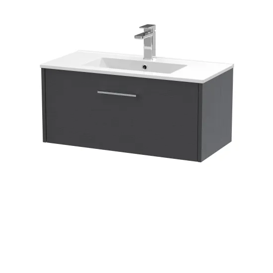 Hudson Reed Juno 800mm Wall Hung Single Drawer Vanity & Minimalist 1 Tap Hole Basin - Graphite Grey