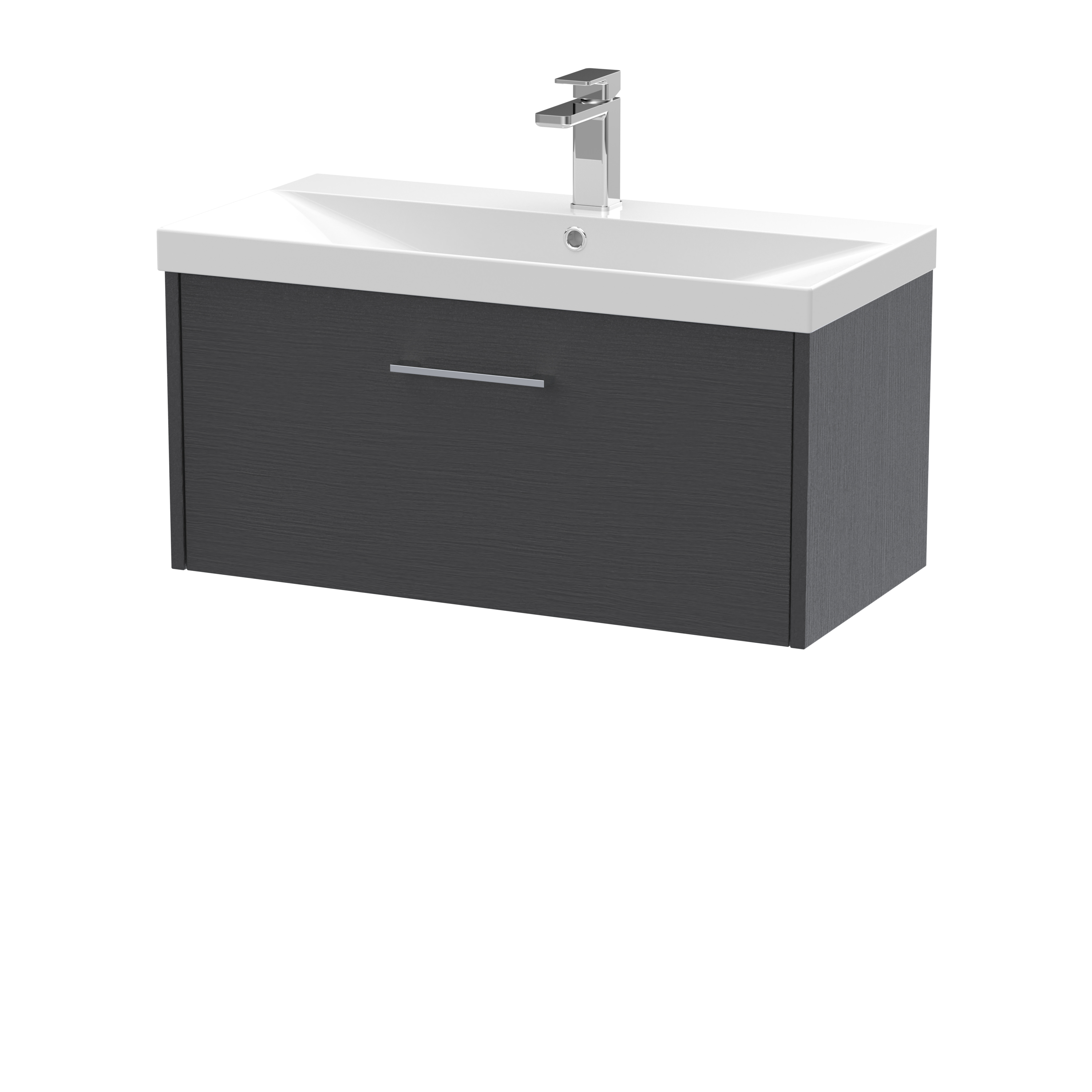 Hudson Reed Juno 800mm Wall Hung Single Drawer Vanity & Thin-Edge 1 Tap Hole Basin - Graphite Grey