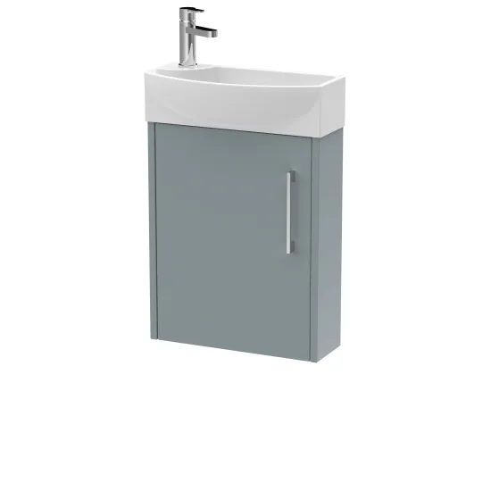 Hudson Reed Juno Compact 440mm Wall Hung Single Door Unit and 1 Tap Hole Basin Right Hand - Coastal Grey