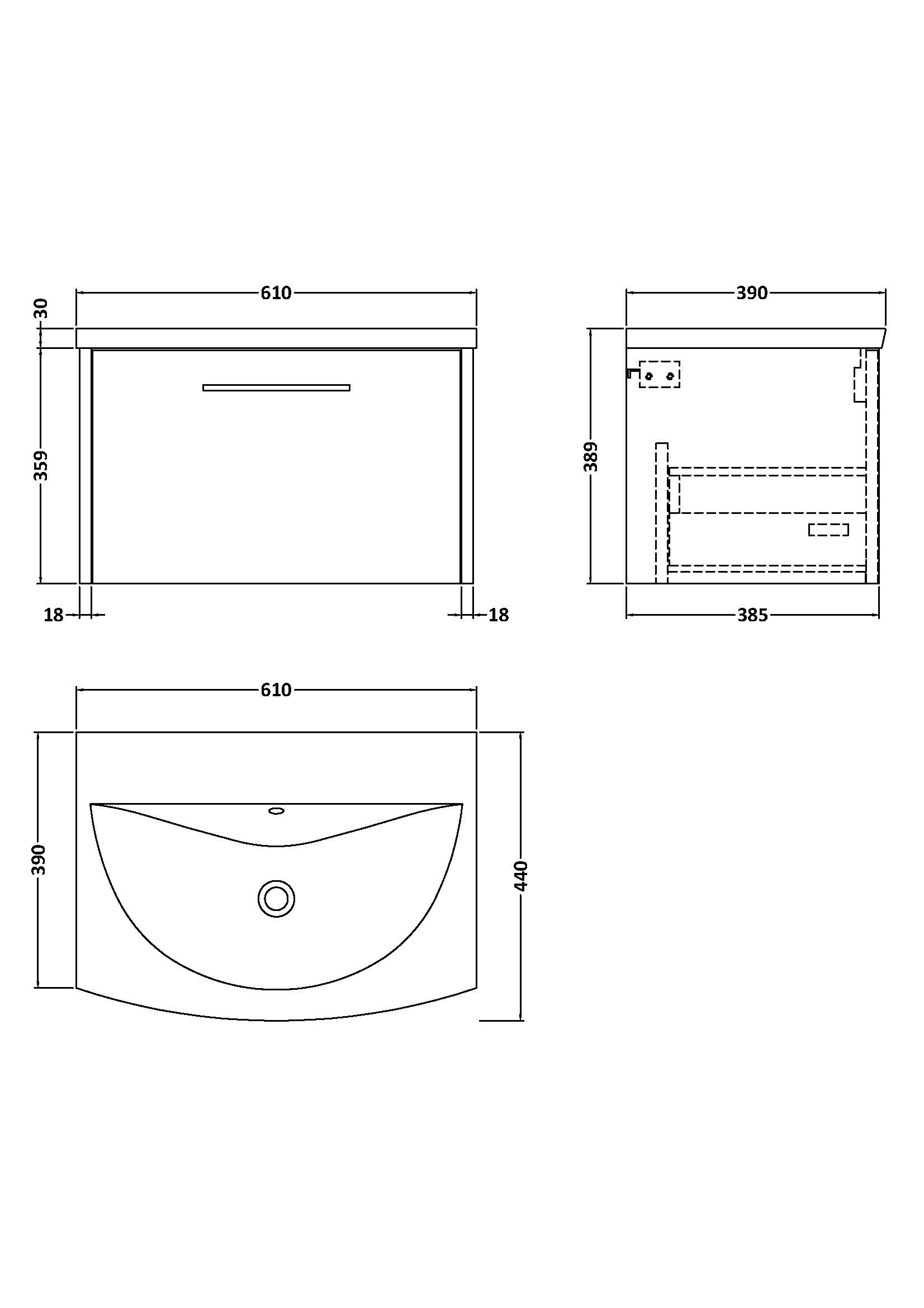 Juno Wall Hung 1 Drawer Vanity Basin Unit & Curved Ceramic Basin, 600mm