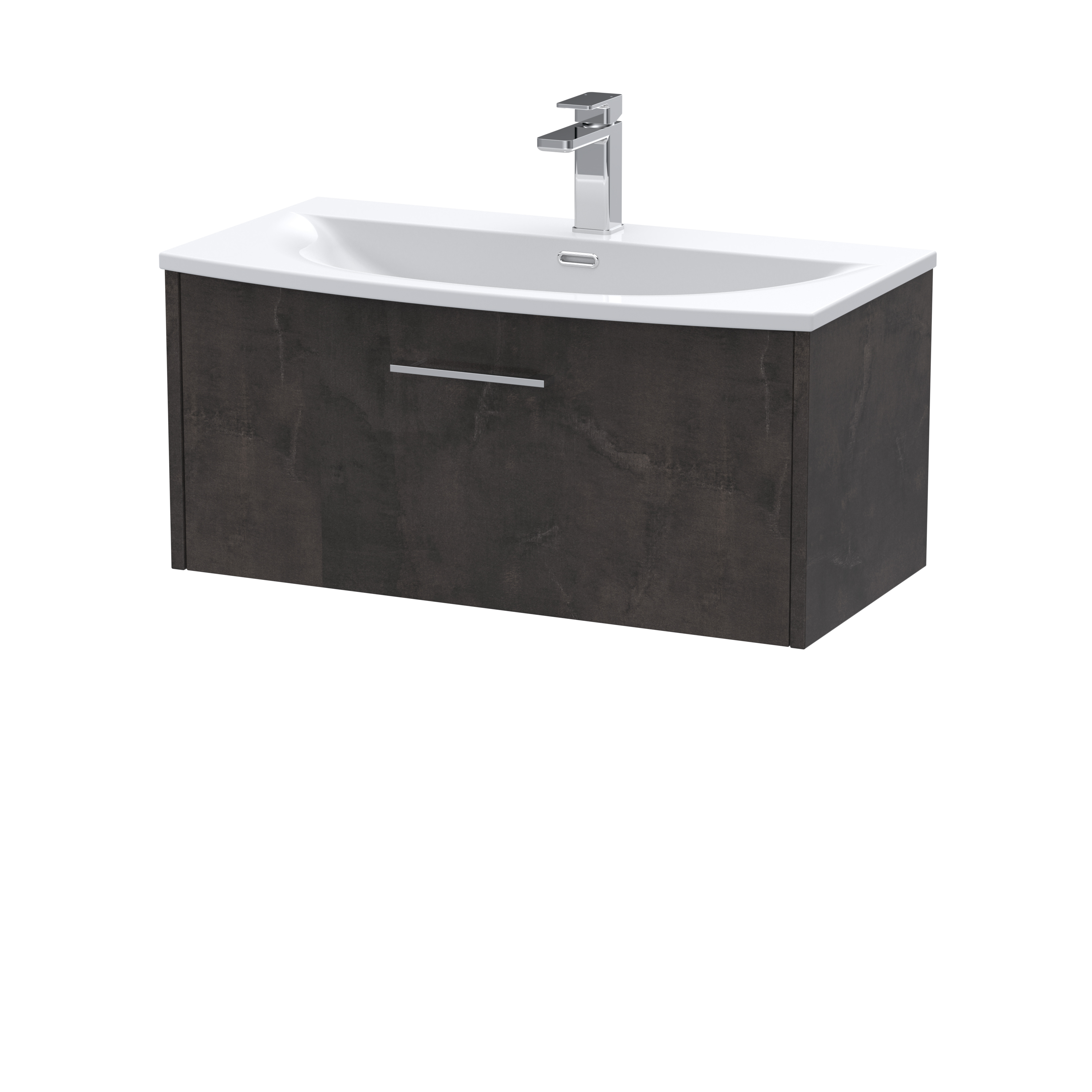 Hudson Reed Juno Wall Hung 1 Drawer Vanity Basin Unit & Curved Ceramic Basin, 800mm - Metallic Slate