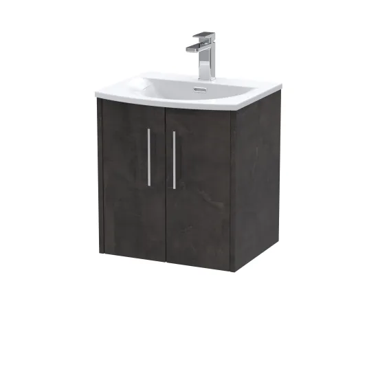 Hudson Reed Juno Wall Hung 2 Door Vanity Basin Unit & Curved Ceramic Basin, 500mm - Metallic Slate