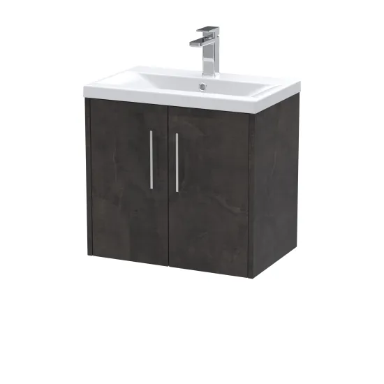 Hudson Reed Juno Wall Hung 2 Door Vanity Basin Unit & Mid-Edge Ceramic Basin, 600mm - Metallic Slate