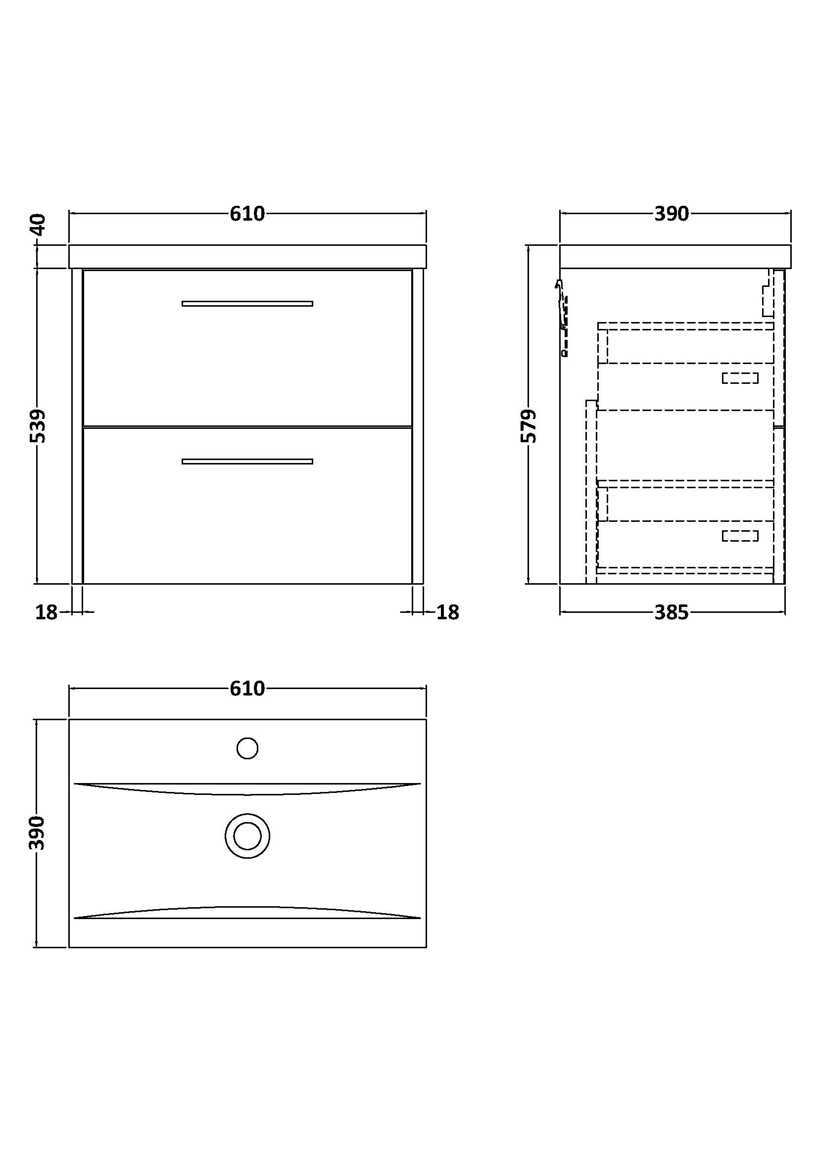 Minimum quantity for "Juno Wall Hung 2 Drawer Vanity Basin Unit & Mid-Edge Ceramic Basin, 600mm" is 1.
