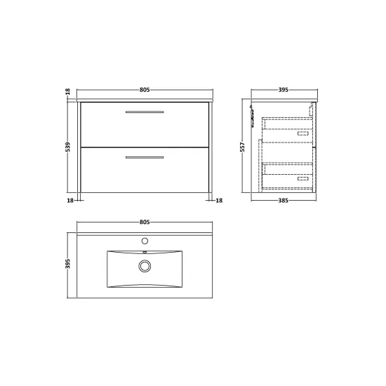 Minimum quantity for "Juno Wall Hung 2 Drawer Vanity Basin Unit & Minimalist Ceramic Basin, 800mm" is 1.
