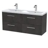 Juno Wall Hung 4 Drawer Vanity Basin Unit & Double Ceramic Basin, 1200mm