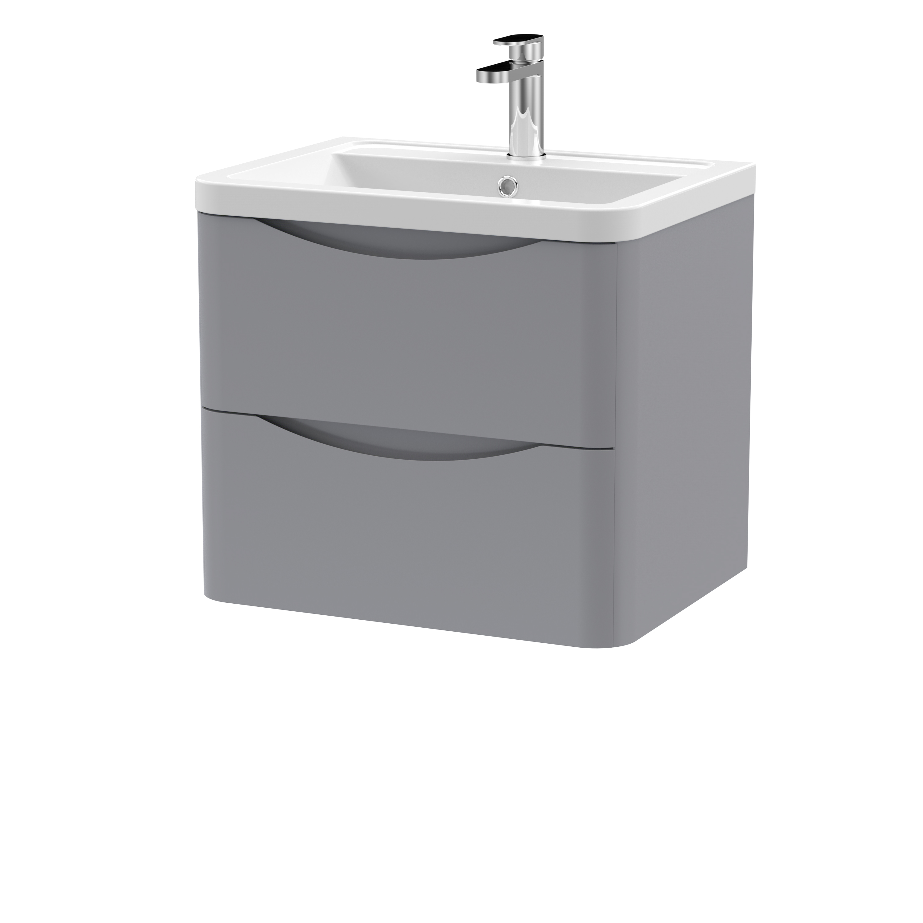 nuie Lunar Wall Hung 2 Drawer Unit & Ceramic Basin, 600mm - Satin Grey