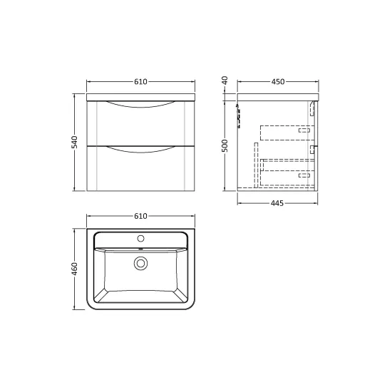 Lunar Wall Hung 2 Drawer Unit & Ceramic Basin, 600mm