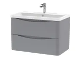 nuie Lunar Wall Hung 2 Drawer Unit & Ceramic Basin, 800mm - Satin Grey