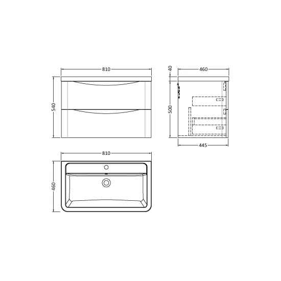 Lunar Wall Hung 2 Drawer Unit & Ceramic Basin, 800mm