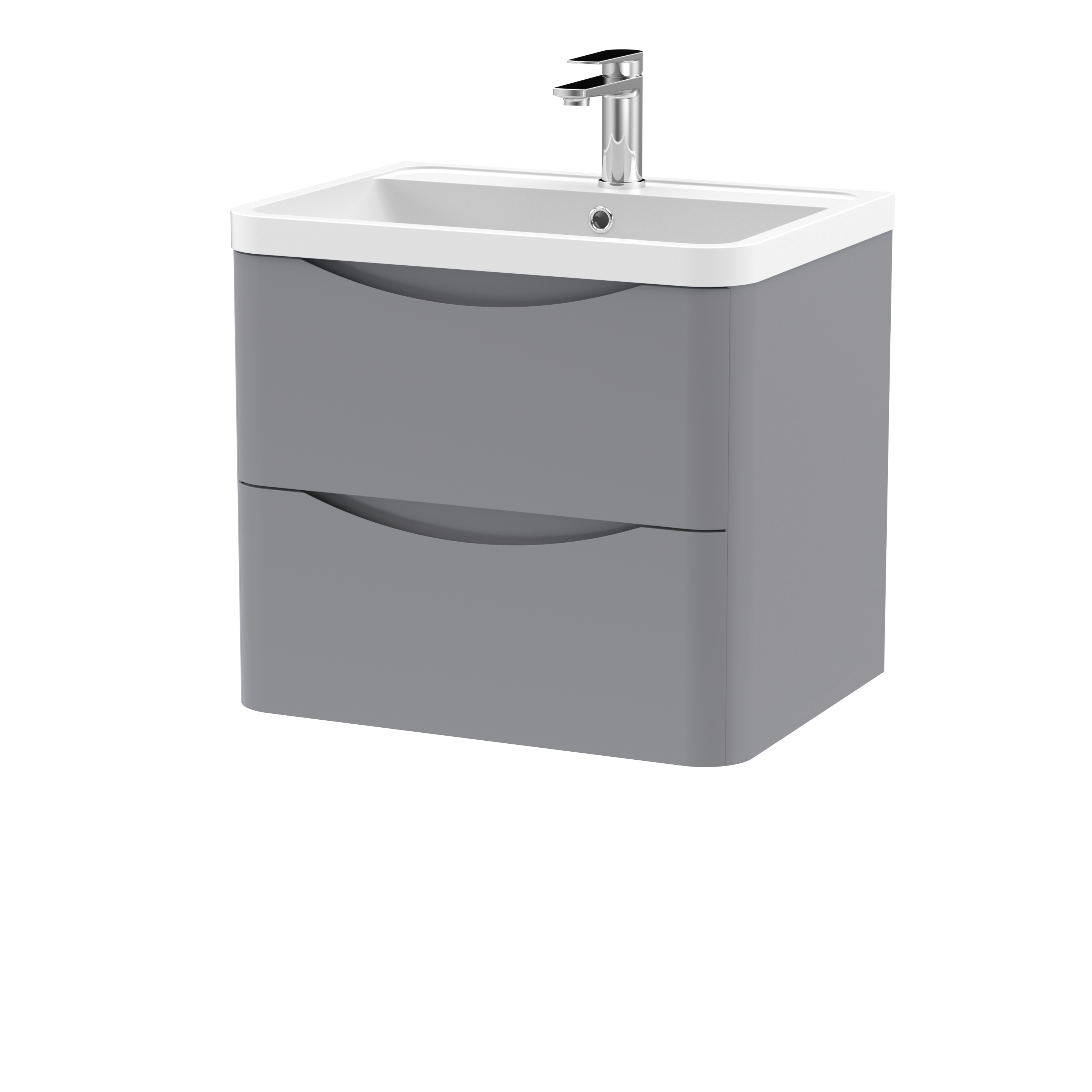 nuie Lunar Wall Hung 2 Drawer Unit & Polymarble Basin, 600mm - Satin Grey
