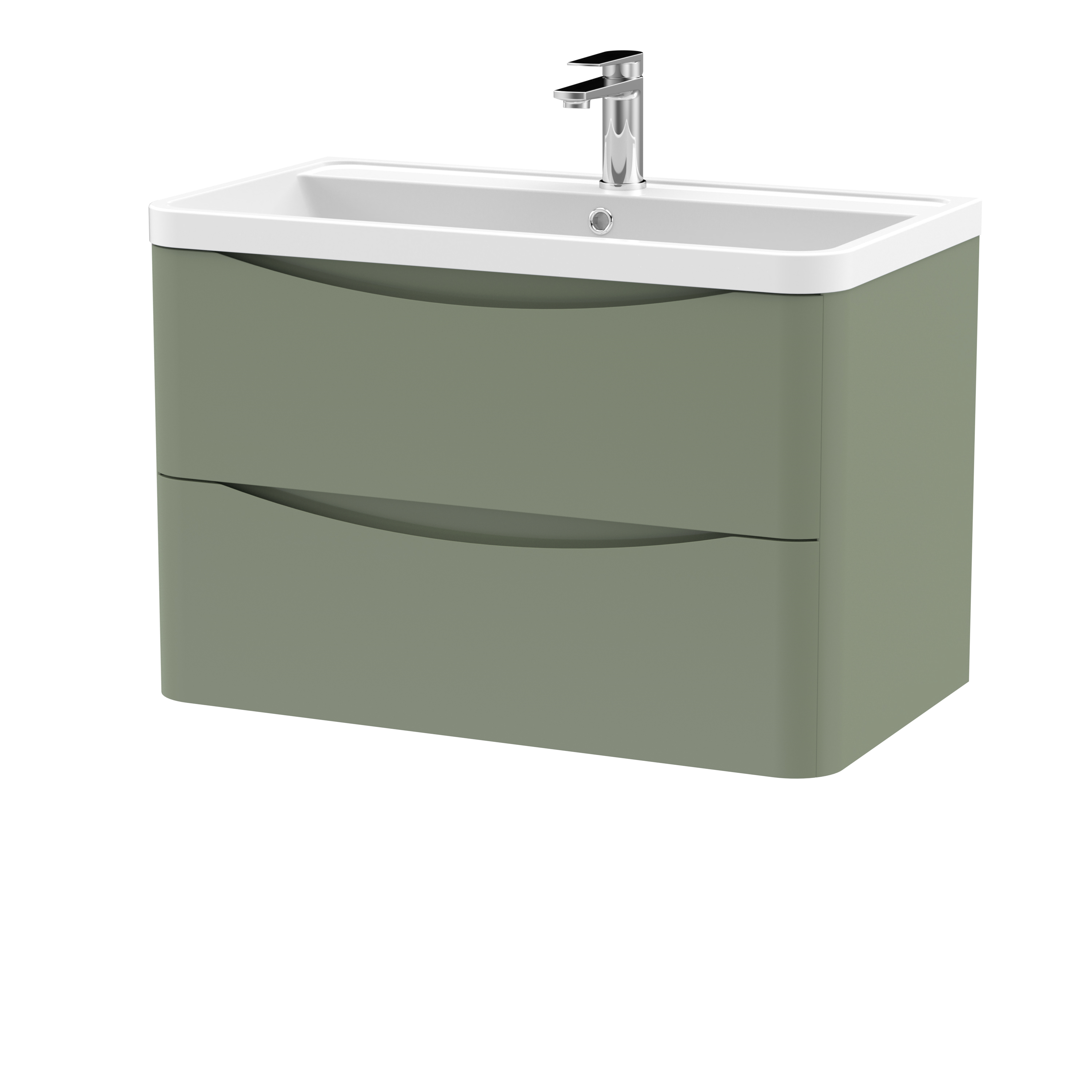 nuie Lunar Wall Hung 2 Drawer Unit & Polymarble Basin, 800mm - Satin Green