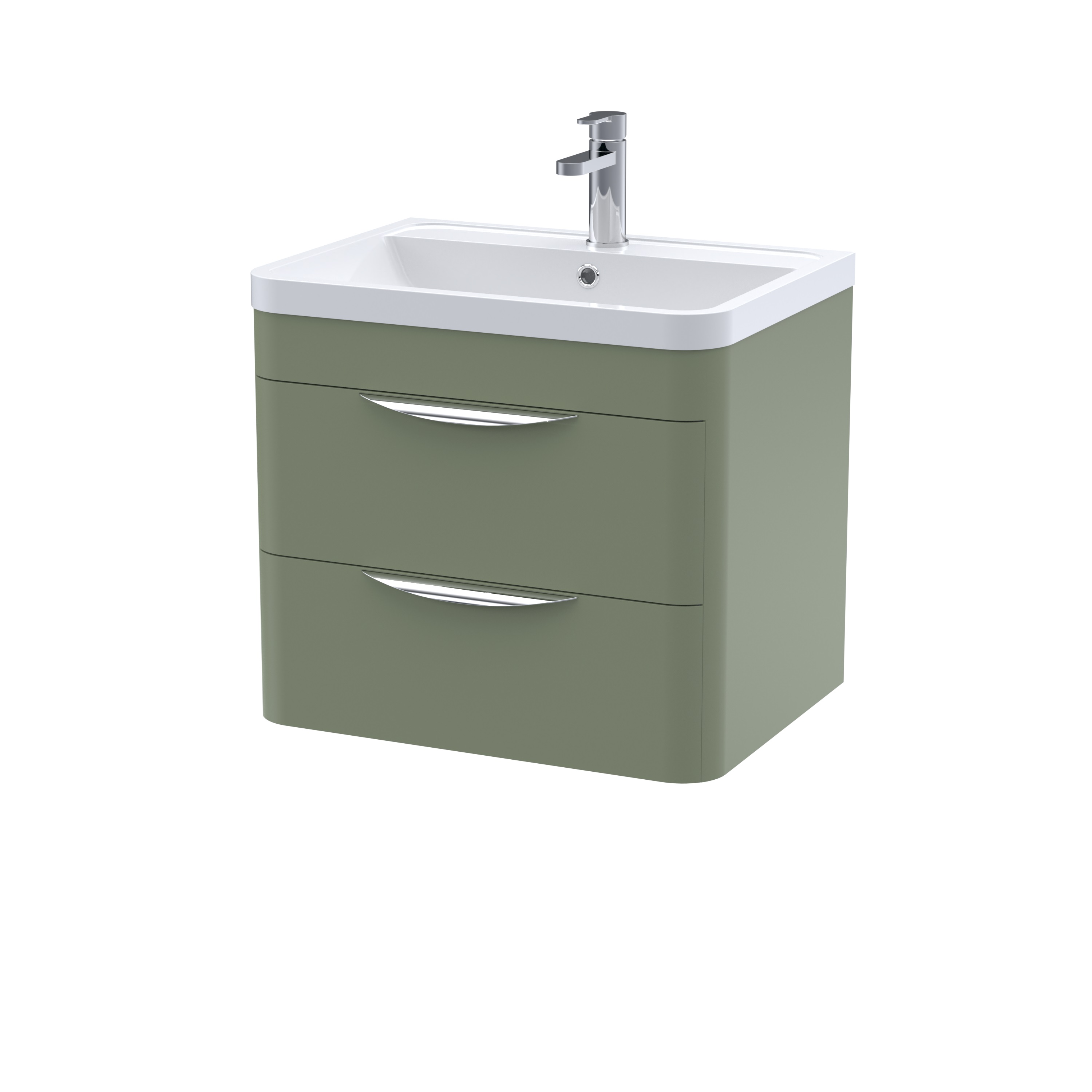 nuie Parade Wall Hung 2 Drawer Vanity Basin Unit & Ceramic Basin, 600mm - Satin Green